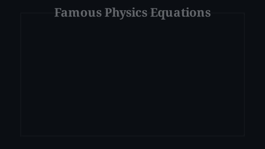 In this case, the final animation moves through a sequence of famous physics equations, each one fading in, holding for a moment, and fading out before the next appears.
